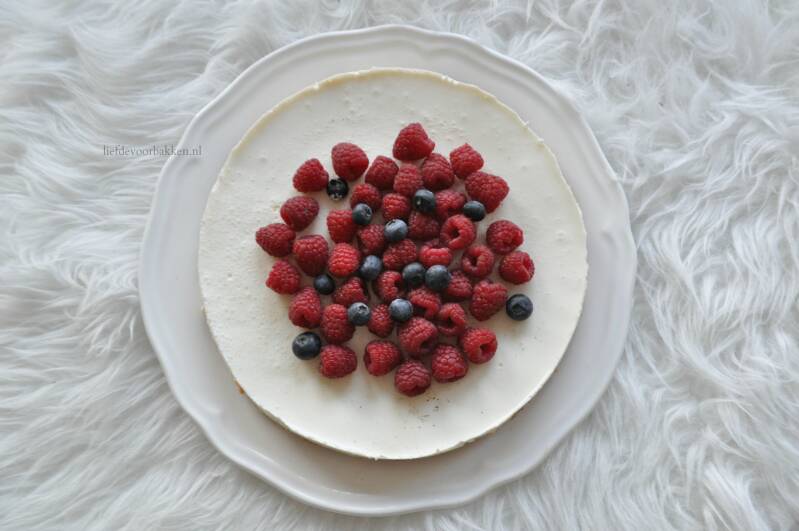 We hebben geprobeerd om bij dit taartje niet voor hele heftige smaken te gaan, omdat wij daar 's ochtends ook niet zo van houden. Ik (Laura) ontbijt laatste tijd heel vaak met Griekse yoghurt, muesli en vers fruit. Dus eigenlijk wat betreft smaak bijna hetzelfde als dit taartje. Dit is een flink exemplaar geworden. Maar mocht je nou kleine bakvormpjes in huis hebben voor mini taartjes, dan kan je ook de helft nemen van alle ingrediënten.