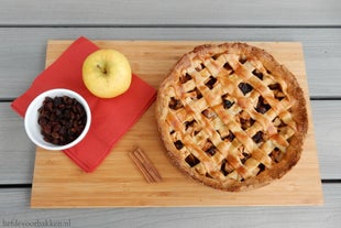 - Vul je deegbodem met je appel-rozijnenmengsel.