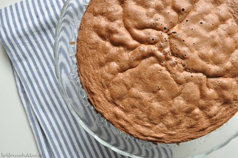 Begin met het maken van de chocoladetaart. Ik heb hiervoor het basisrecept voor chocoladetaart met hele eieren gebruikt. Zie hier het recept. Het kan ook met gesplitste eieren.