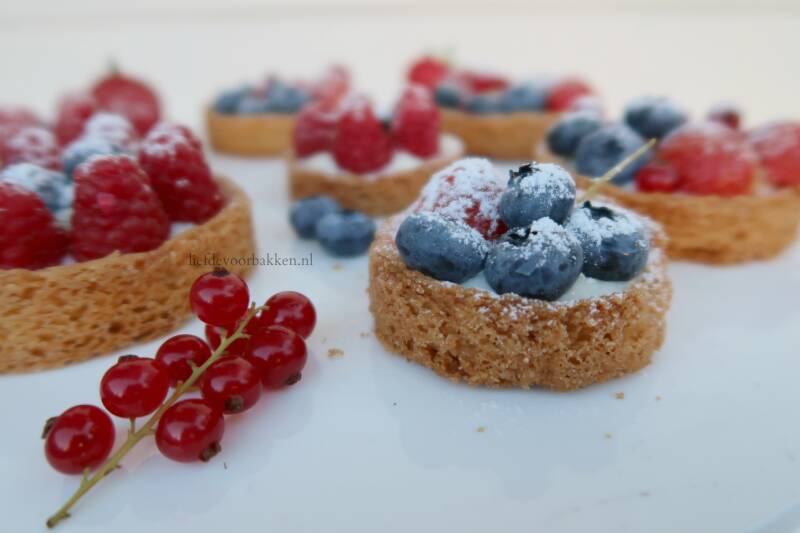 Bretonse minitaartjes met roomkaascrème en rood fruit: