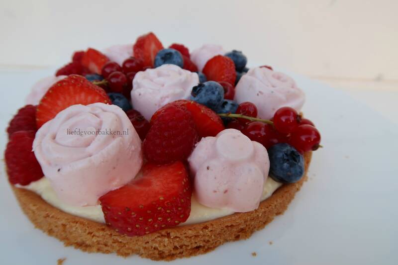 Vorige week hebben we het basisrecept voor Bretons zanddeeg online gezet. Dat is een vrij gemakkelijk te maken deeg en ook nog eens lekker van smaak. We hadden er kleine gebakjes van gemaakt en nu hebben we ook nog een wat grotere variant voor jullie met nog meer heerlijk fruit, chocolade mousse en bavarois.