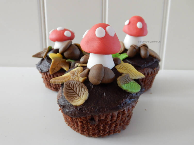 Cupcakes blijven altijd leuk om te bakken en te decoreren. Het is alweer een tijdje geleden dat we een cupcakerecept hebben geplaatst, dus het wordt weer eens de hoogste tijd! Het worden herfst cupcakejes. We hebben vorig jaar een mooie herfsttaart gemaakt, nu is dit een leuke variatie hier op. Het zijn chocolade cupcakes. Met fondant decoratie. Paddenstoeltjes, herfstblaadjes, wat eikeltjes en hazelnootjes en als je zelf nog meer ideeën hebt, leef je uit!