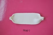 Plak vervolgens de lussen vast met een stukje sticky fondant achter het plat geknepen gedeelte van de lus, en een stukje sticky fondant achter het grootste deel van de lus.