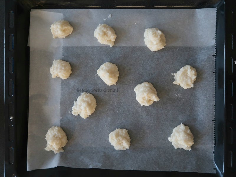 Schep kleine hoopjes, eventueel met een ijsschep, op een bakplaat met bakpapier.