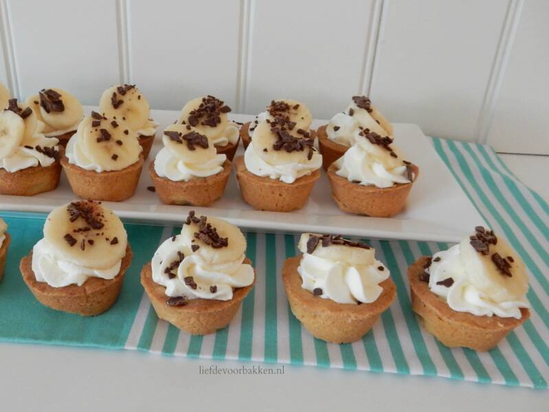 Houd je van karamel en banaan, dan is dit vast een favoriet recept voor jou! Ben benieuwd wat jullie vinden van deze mini banoffee taartjes. Kleine bakjes gemaakt van zanddeeg, daarin een heerlijk laagje karamel en dan slagroom en plakjes banaan. Een mini uitvoering van de banoffee pie.
